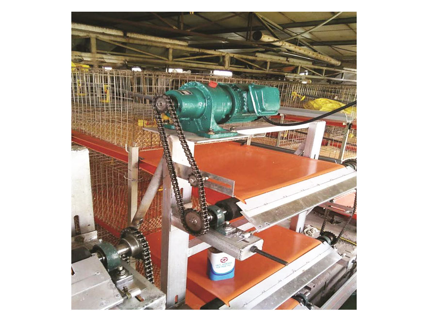 傳送帶式清糞機(jī)是根據(jù)現(xiàn)代化高科技養(yǎng)殖需求設(shè)計(jì)而成,使雞糞 在禽舍內(nèi)無發(fā)酵即被傳送到舍外。配合橫向清糞帶直接把雞糞裝到清糞車.上,輸送率達(dá)到99%以上。降低了勞動(dòng)成本,提高了工作效率。
